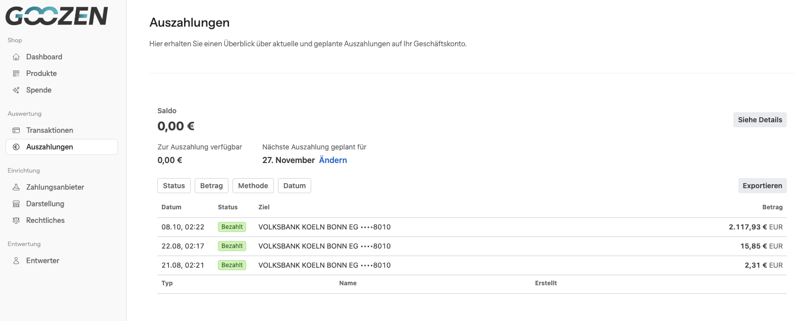 Auszahlungen-Dashboard findest du immer die aktuellsten Daten: